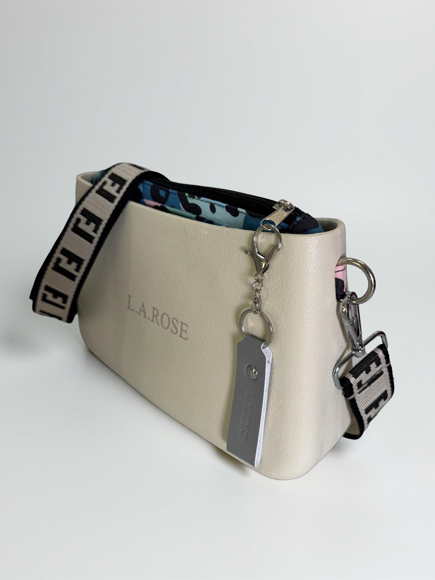 Eva Cross Body Cream with colourful animal print inner
